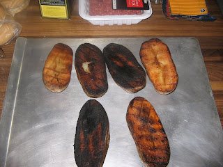 This session presented some challenges that concerned me. In reviewing the recipe for the Twice Grilled Potatoes, I noticed that this would be a lengthy grill. My previous attempts with The Forge were what I would deem Quick Burns. I would get the charcoal started, cook for fifteen minutes, and then call it a night. This session, however, presented the challenge of maintaining proper cooking heat for fourty-five minutes to an hour. On Ol' Faithful this is not a problem. It is a significant advantage that a proprane grill has in that unless you run out of propane, a griller can sustain the same temperature for hours rather easily.
