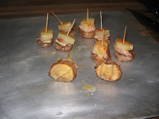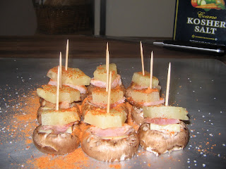 Here are the Ham and Swiss on a Toothpick after prep, on the grill, and then done:
