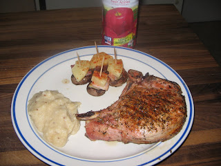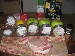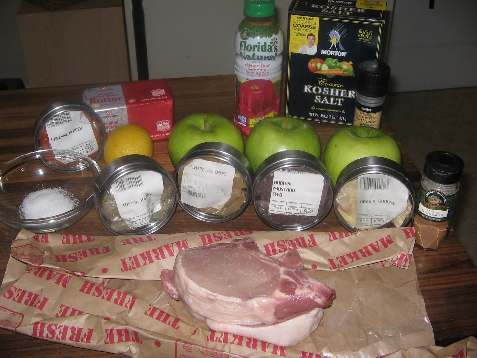 So I had to try something else instead. I really didn't want fish again, and so I settled on pork chops. Last night before bed I perused The Guide, and decided that I would try my hand at the All American Pork Chops With Homemade Applesauce on page 187. The ingredients I needed are here: