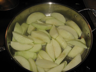 The first step was to make the applesauce, as that, I figured, could wait once made until the meal was ready to be served. I feel moderately confident around a sautee pan, so this was easy. I also got to use my new blender (I went with this as it is easier to clean than the food processor) once the apples had softened.