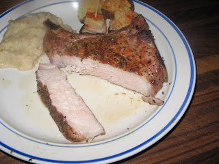 Also, the applesause was PERFECT with the pork chops. I don't often like to mix my food while eating, but I gave it the old college try by putting some of the applesauce on a bit of pork chop. It sung. The sweet tartness of the applesauce gift-wrapped the flavor package. It behaved much more like a true sauce than a side.
