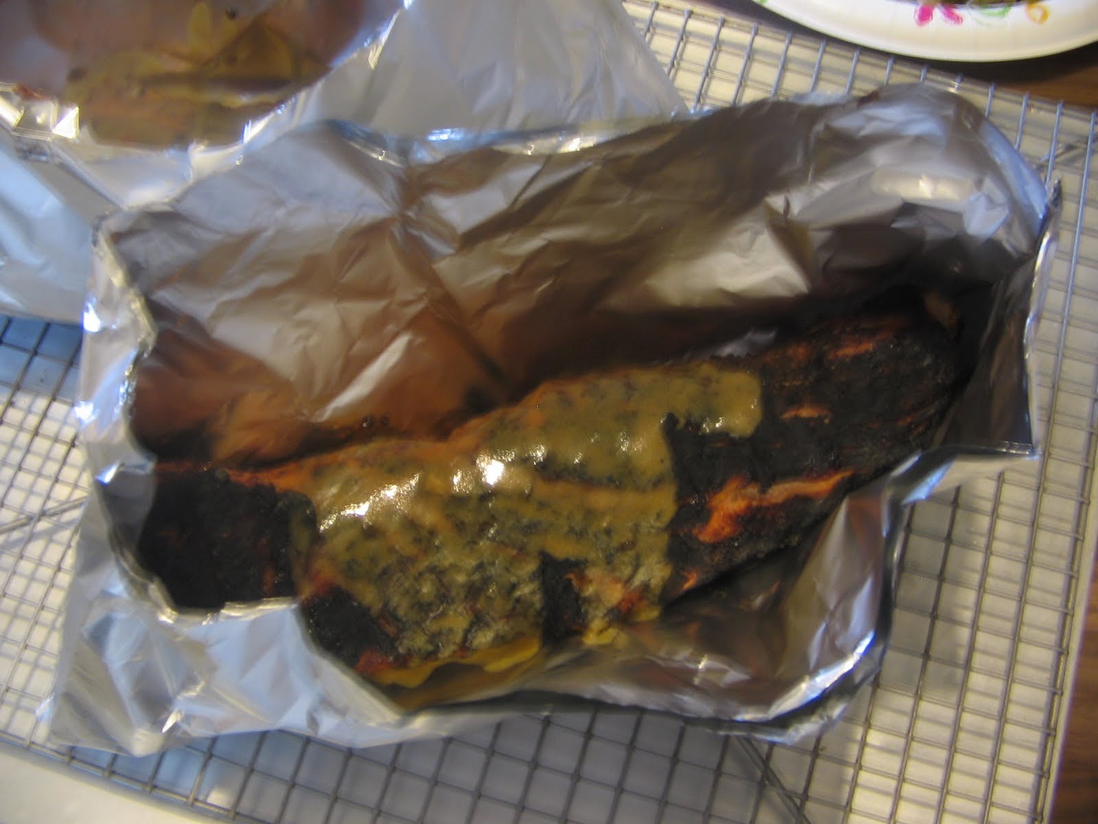 More on this later. I did, however, sneak one of Alton Brown's secrets in...I boiled the marinade for a few minutes to rid myself of nasty microbes that would spoil my evening, and prepared foil pouches.