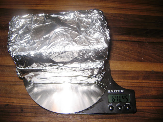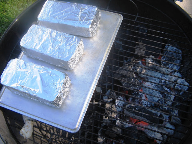 I started the rice, as it takes almost an hour to cook, and then set up The Forge for medium indirect heat. From there, I wrapped the bricks in foil, and because I am a geek, I learned that I was going to use a little over six and a half pounds of bricks.