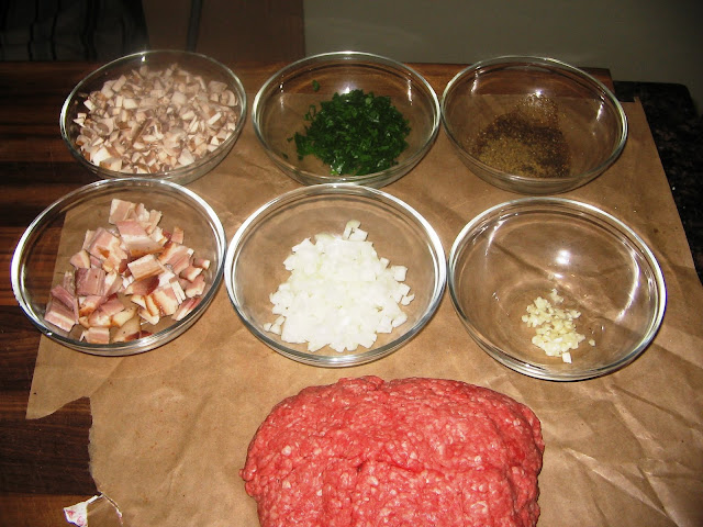 Last Sunday The Bride and I planned to have our red meat on Friday night. I got home from school, sat on the couch, and bade the world good-bye for a bit. When The Bride got home around 7:30, I figured I would throw the recipe for Bacon-Mushroom Beef Rolls on page 96 together. I was wrong. I really should have read the recipe more thoroughly when I got home. This was going to be a two to three hour experience. Such is life. :)