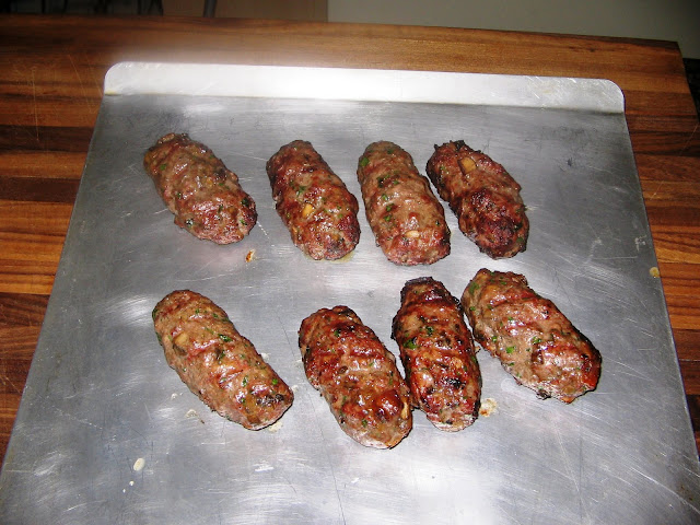The "burgers" were delicious! I would use this mixture for regular burgers any day you want and twice on Sunday. Weber did it again with this concoction. The sauce was just okay by itself. It basically tasted like red wine-based ketchup. Although I cooked it longer than recommended, the tomato sauce and tomato paste still had that raw taste that made it a little unpleasant. I was apprehensive about using it, but the sauce really complemented the beef roll. When The Bride asked for seconds, she requested more sauce than what I had previously given her. Finally, I liked the lettuce wrap aspect of the recipe. It's a fun way to cut carbs, and the lettuce provided a nice texture change from the beef roll. All in all, I like this recipe a lot, and when I use it again I will allocate more time. Eating at 10:00 at night doesn't bother me, but I realize that this would make some people upset.