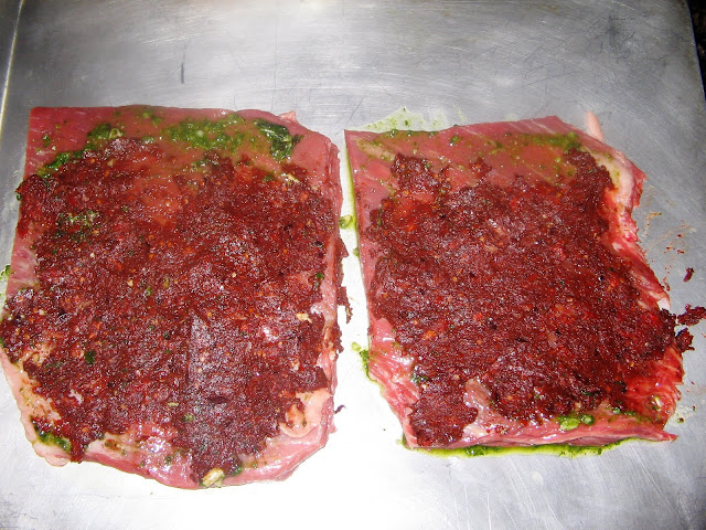 The first thing to do was shaped the steaks, and create the pesto and filling (what I would call a tapenade).