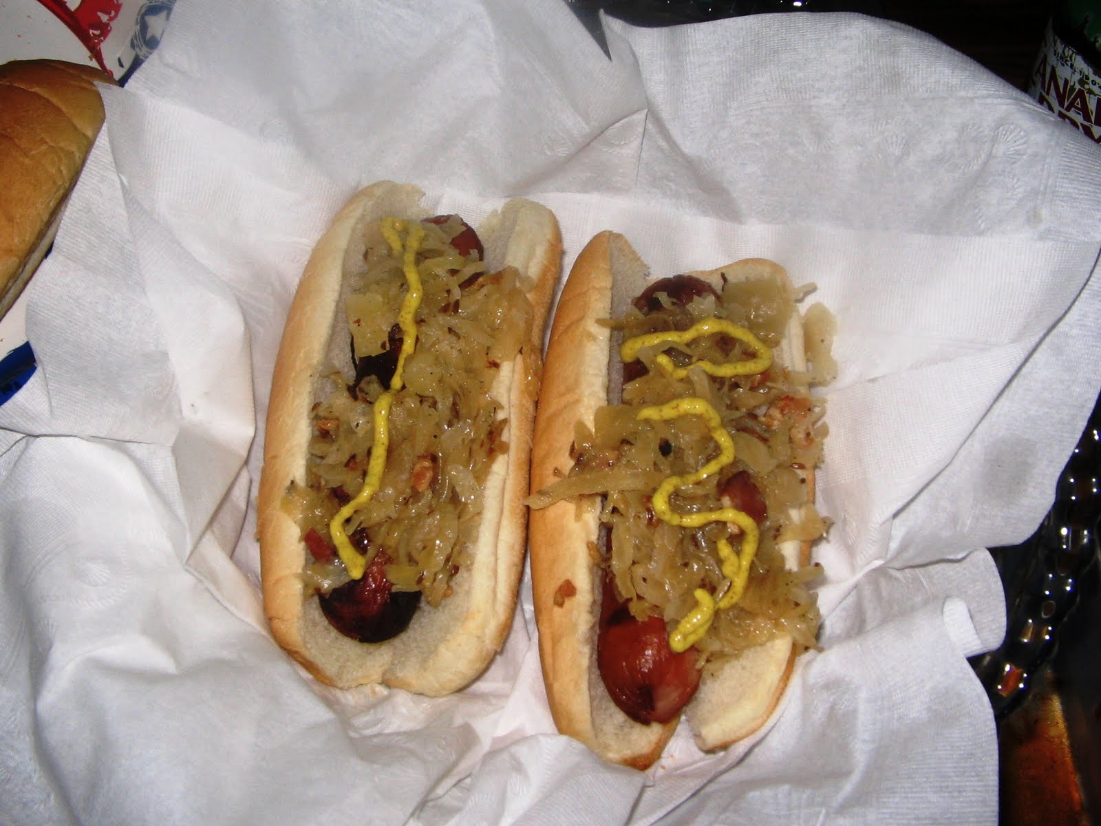 These were an even bigger hit. Doctoring up sauerkraut is easy and helps out the flavor tremendously. What I was surpised at was how many of the guests were upset that they ate the first round of brats without knowing that there would be a second type that had sauerkraut. I did not anticipate that many people that liked the stuff. I adore sauerkraut, but I know that it's not for everyone.