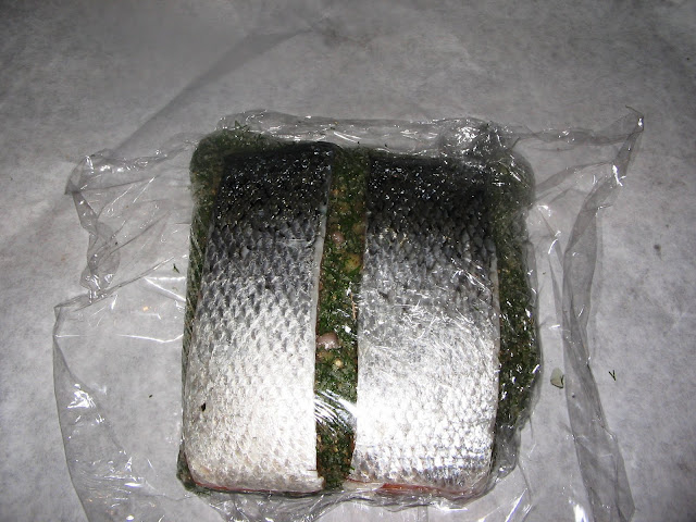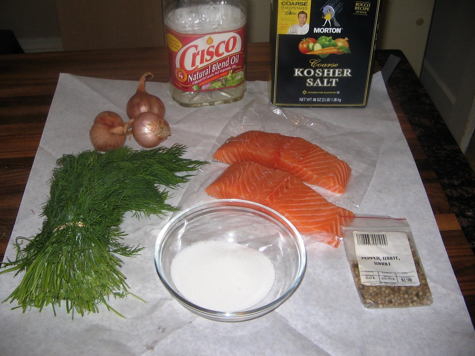 In retrospect, tonight's dinner was a little orange. Earlier in the week The Bride and I decided to have Oak-Grilled Salmon on page 295, and as part of my diet I am supposed to have sweet potatoes. As I was thinking about a side tonight, I realized that it had been some time since I had the stuff, so I went ahead and made a big plate of orange food.