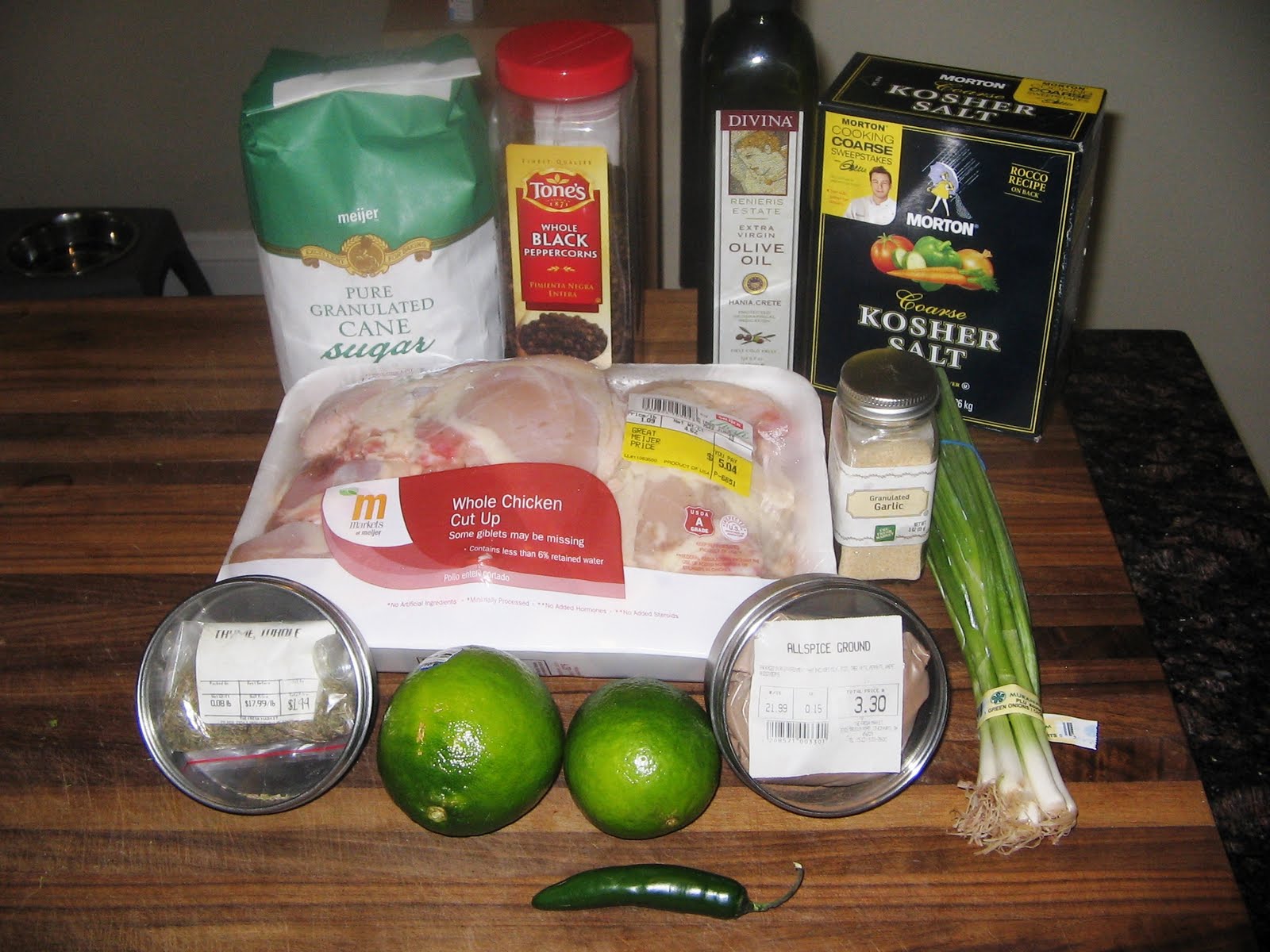 I did make some substitutions that I probably should make mention of in the interest of what I am doing. The first substition was to replace the habenero with a serrano pepper. As much as I like spicy food, the habenero just has a flavor that I really don't prefer. That, and it's f'n hot. Second, I replaced canola oil with olive oil. I recently acquired some nice Greek olive oil from my friend, Sean, and was eager to use it. Upon making the paste in my food processor, I used a large bowl to cover all parts of the chicken. There was no getting around it; I had to get a little messy. The olive oil, I must say, worked quite well. It retained its flavor amongst all of the other ingredients, which in a jerk sauce/marinade is quite a feat. I would like to take a minute to say that within the last year I have discovered that I like Greek olive oil much more than the Italian varieties. The stuff from The Boot can be too delicate and easily overwhelmed by other ingredients. Sometimes it just downright lacks actual flavor. The Greek olive oils have a much more interesting flavor and make the dishes you cook all the more interesting.