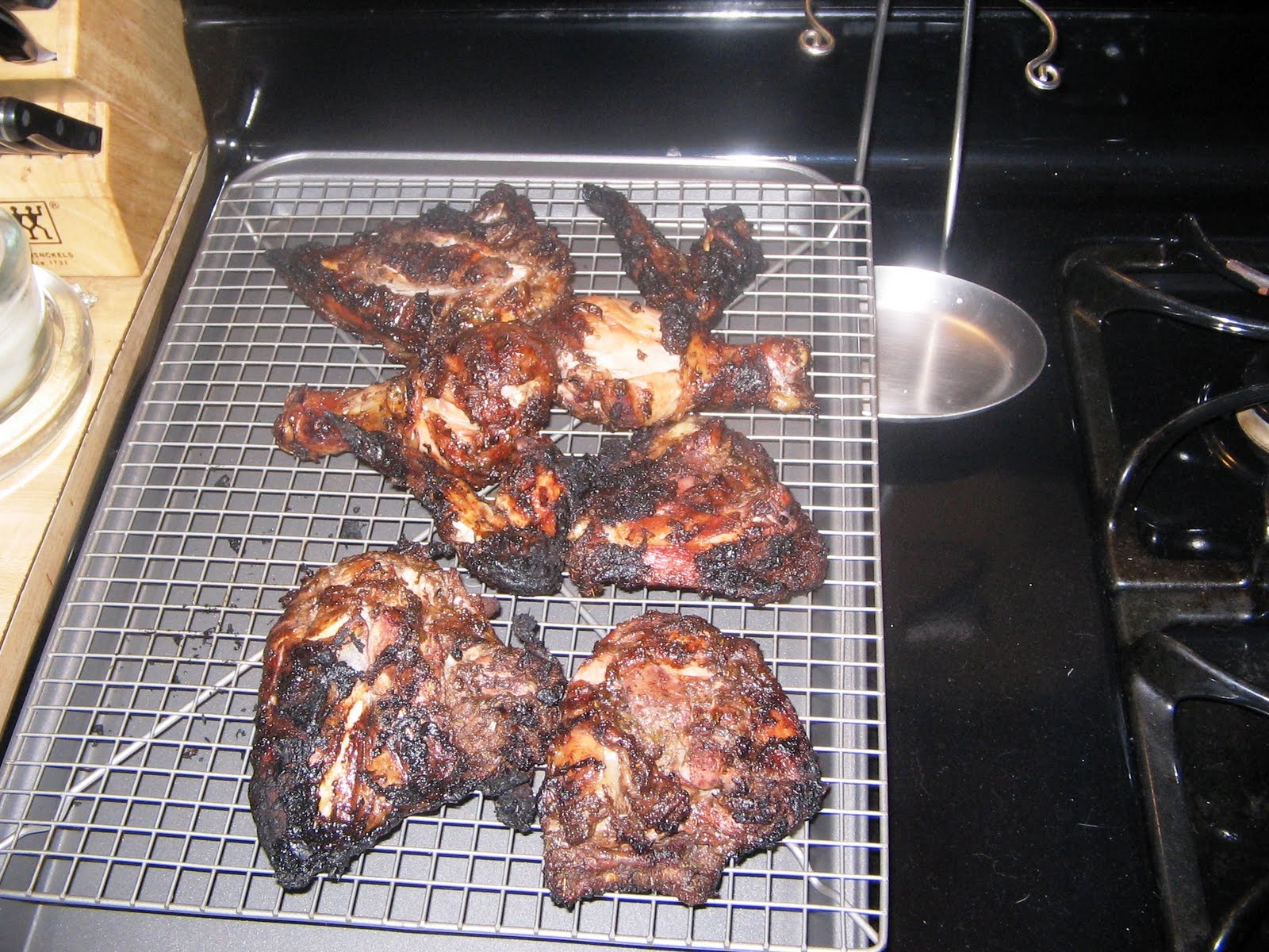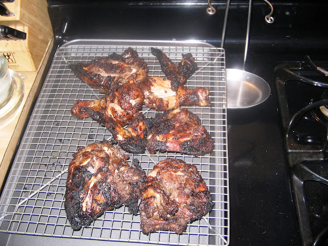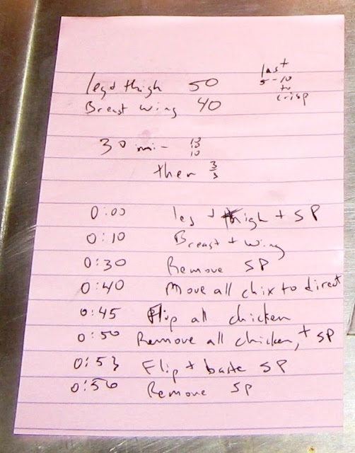 I don't expect you to make much of my chicken scratchings, but I still think it's a good idea to set your course of events in writing when you have a lot going on. It really helps me remain calm when there is a lot going on, and things tend to go better when I am calm. The first thing to come off the grill was the chicken.