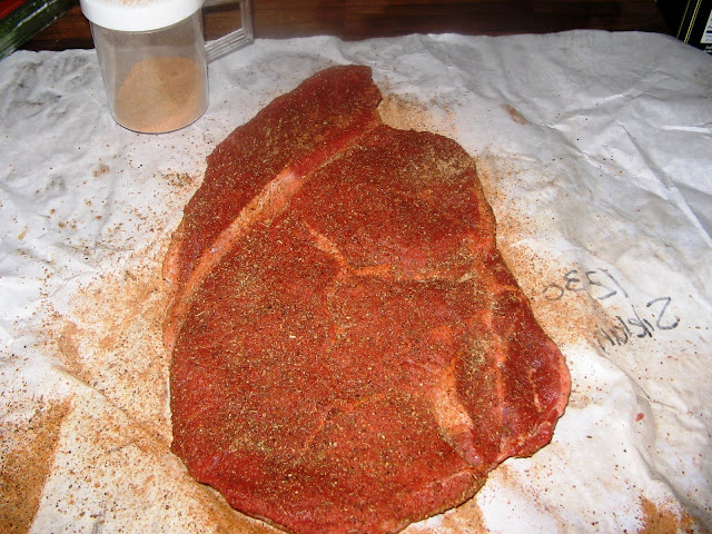 Thank goodness I had done grilled corn recently. It gave me the experience I needed to pull together the corn salad. I prepped the cobs like I had done before, and while they were on the grill I prepped the sirloin. First I used my spice blender to bring the rub together.