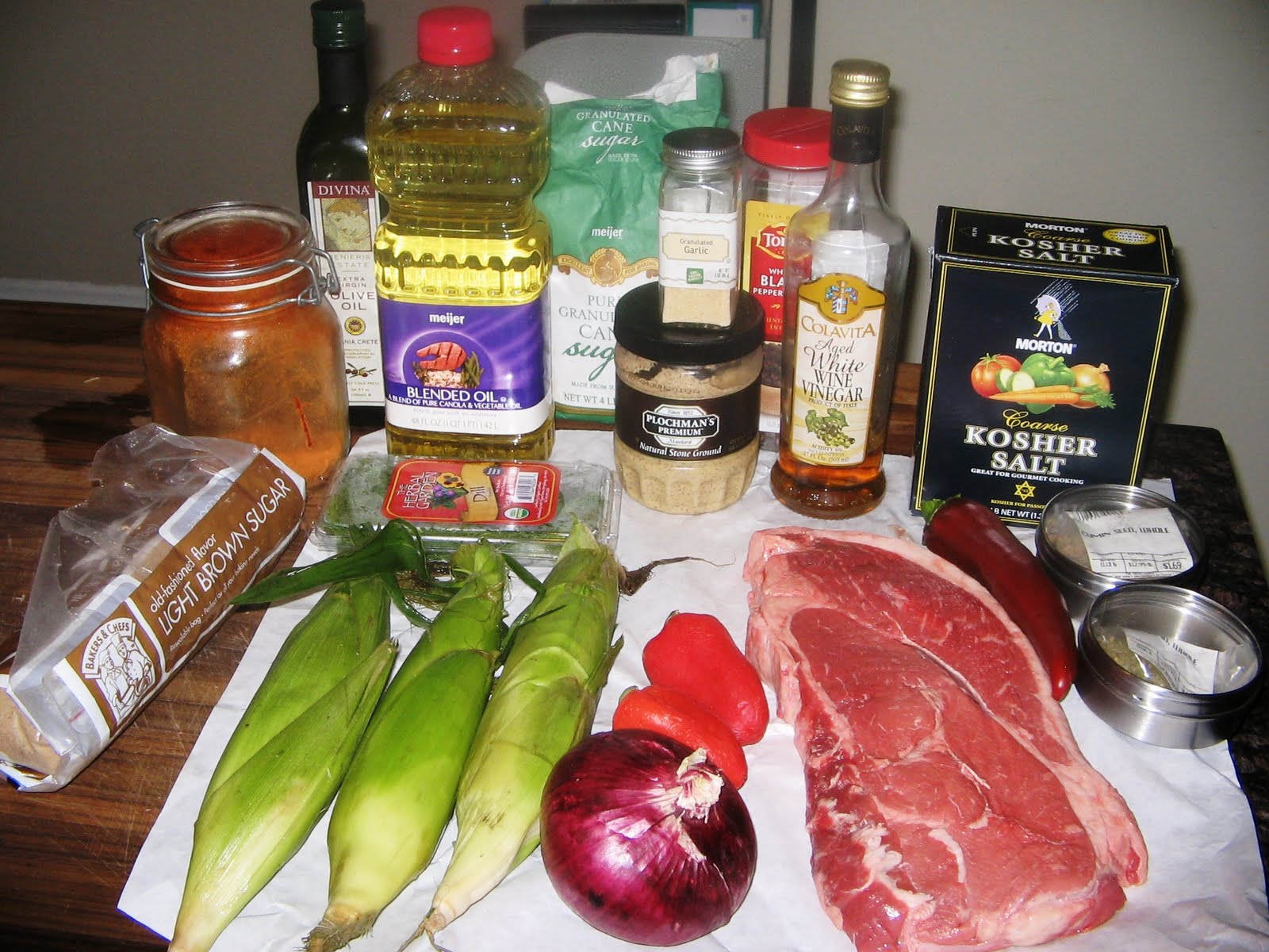 Between the heat, my schedule, other commitments, and general laziness, I haven't grilled in quite some time. Figuring it was time to get back into the groove of things, I went with something a little more in my comfort zone than the last session: Southwest Sirloin With Corn Salad on page 112. After a quick trip to Findlay Market, I had all that I needed.