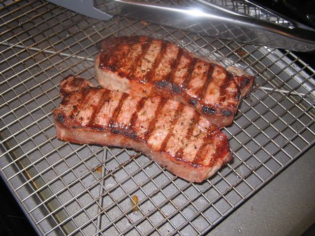 Into the fridge it went while the potatoes cooked in the oven and the steaks readied themselves for the grill. When the time was right, I prepped the steaks with salt, pepper, and a light brushing of the olive oil.