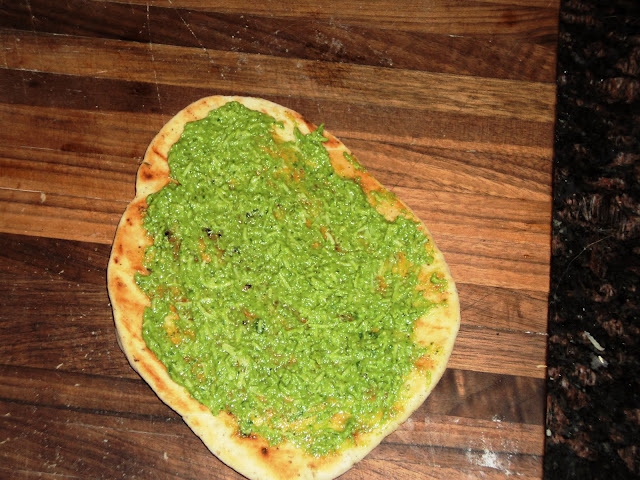 I then laid in the "pesto" that Cody had turned into more of a puree with the immersion blender. :)