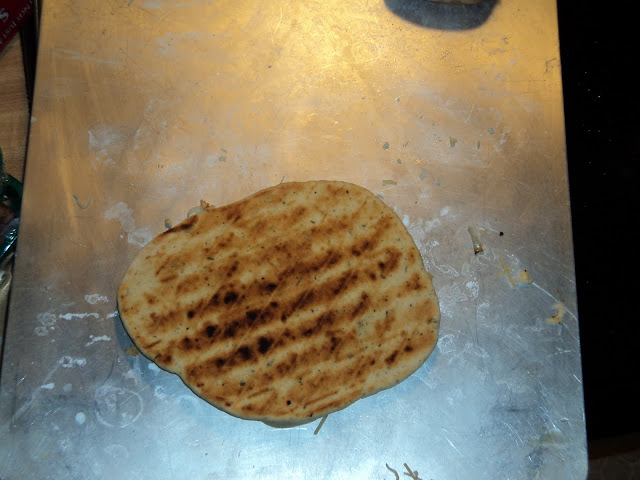 While his was on the grill, I began making my pizza. I began with the grilled dough.