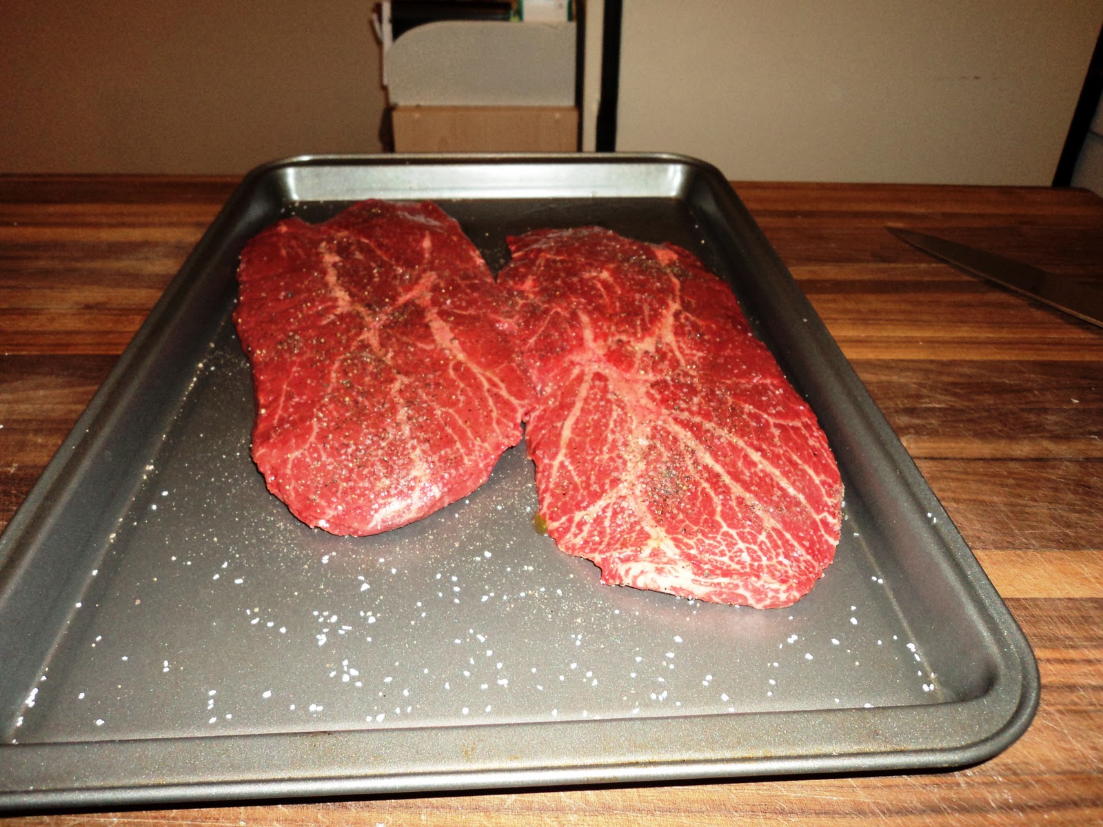 From there, I added the salt and pepper to the steaks before bringing them outside.
