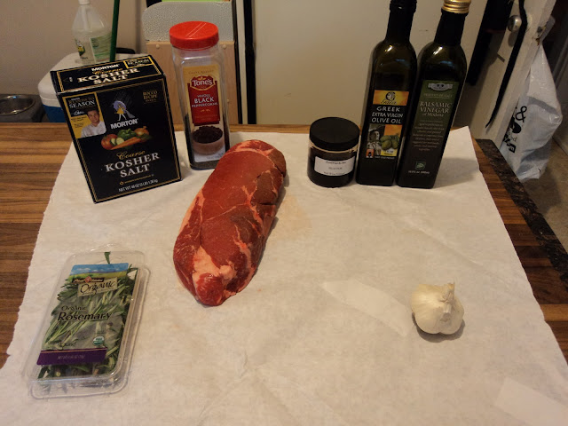 The steak was, again, perfect. It was cooked to the perfect temperature, and I'm glad I had cut that monster steak in half. I would have liked to have marinated it longer, but such is life. I didn't want to start cooking after 10:00 p.m. The Eggplant Roll-Ups were also pleasant. The heat from the olive oil really played off goat cheese and tomatoes well, giving a nice contrast of textures and flavors. It was even fun to rub a little of the steak in the dressing for extra flavor. I'd like to try this again, only with a longer marinade time.