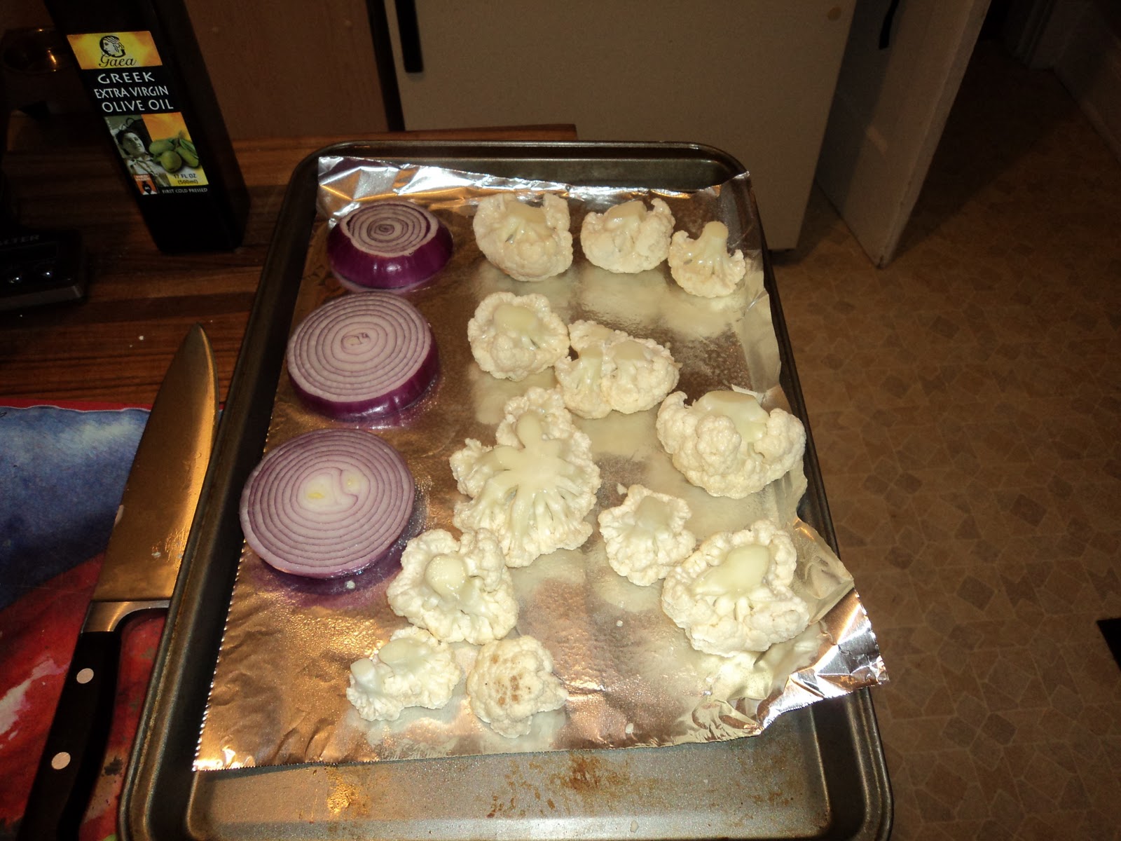 Although I had broken down whole chickens before, I had never really worked with a whole head of cauliflower (nor broccoli, for that matter). I think I did a decent job.