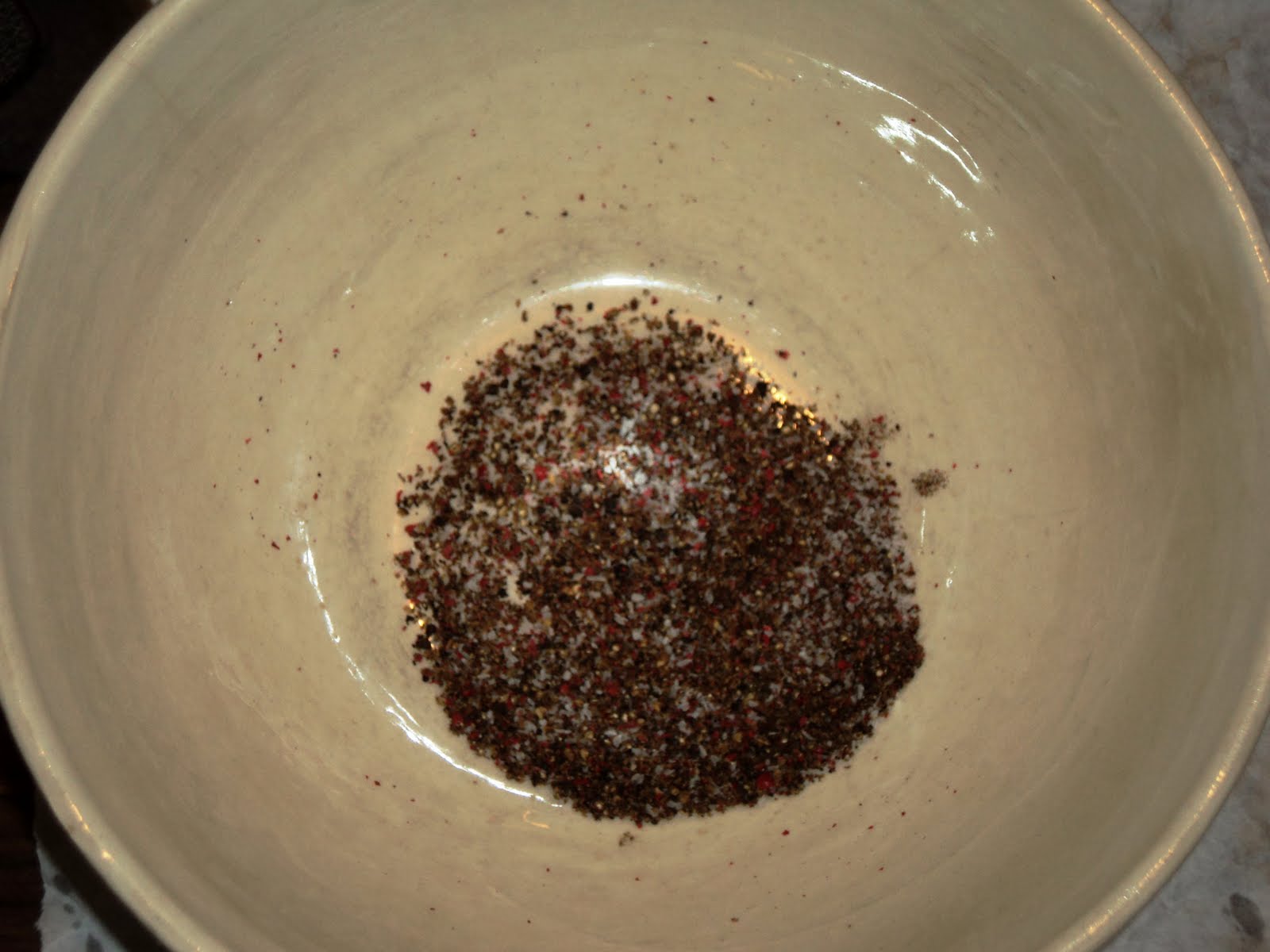 The rub for the filet called for a mixture of red and black peppercorns. Into the spice grinder they went!