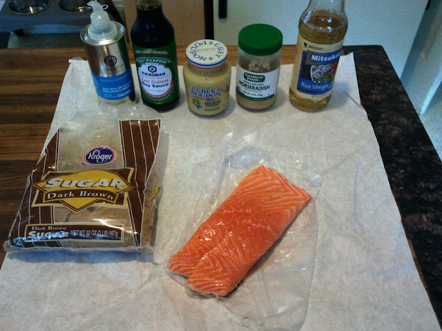 When six out of seven days in the forecast involve rain, you have to take advantage of every opportunity to grill outside. Today, although the temperature is dropping into the thirties, was still fairly sunny in the afternoon. I have had a long week, however, and wanted something quick, light, and easy. The Simple Salmon on page 298 looked to fit such a bill.