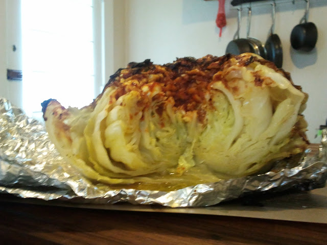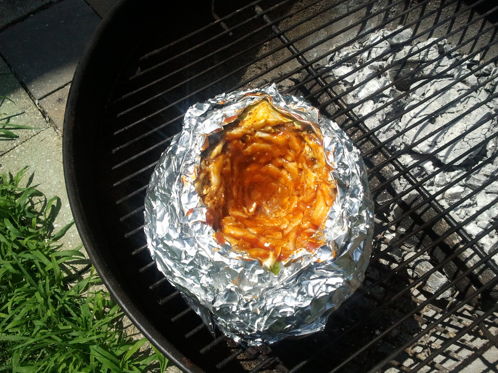 In case you haven't figured it out by now, I like to have a theme for my meal. The theme today was BBQ sauce. I still have some left over from my spring pre-golf BBQ, and needed to use it up before it went bad. I am also on a bit of a limited budget this week, and needed to do things on the cheap. Before I get to the main dish, however, I actually needed to start the side, as it has a heretofore unprecedented grilling time of over two hours! My first BBQ dish was the Barbecued Cabbage on page 347.
