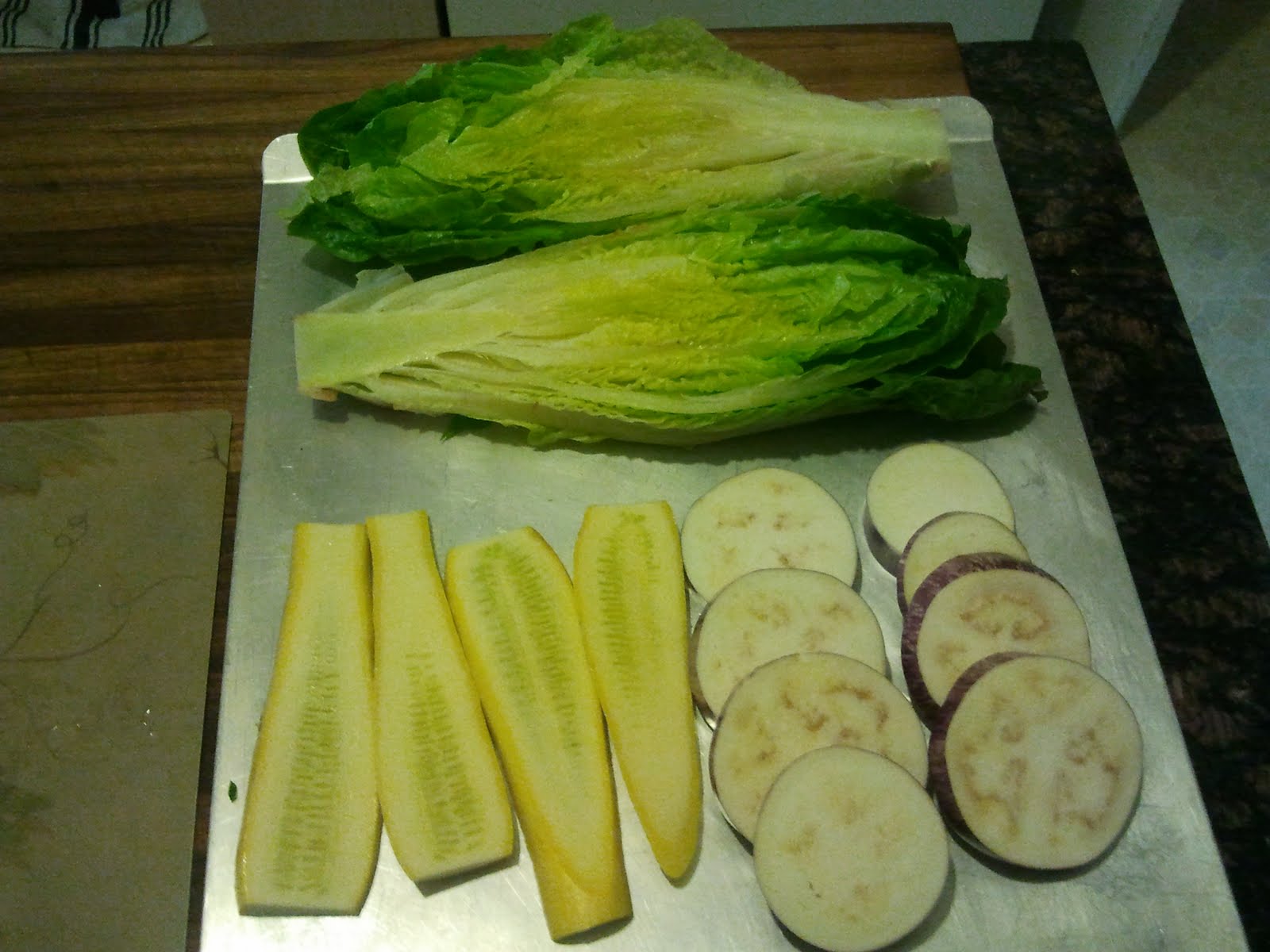 I prepped the vegetables for grilling so that I could turn my attention to the fish cakes.