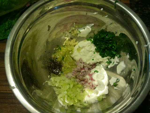 I love tzatziki sauce...especially with fresh mint from my garden. I also went with Greek yogurt, as it tends to have an extra tang factor.