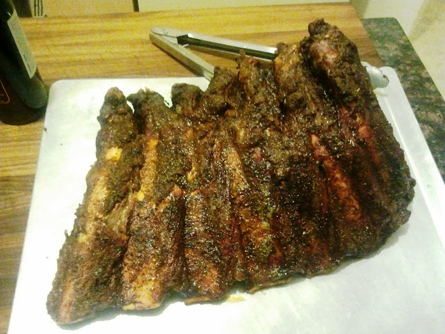 Similar to when I cook pork ribs, I removed the membrane from the back of the ribs. This will eliminate an extra "chewy" factor from the overall dining experience. It also allows any smoke flavor to penetrate both sides of the meat.