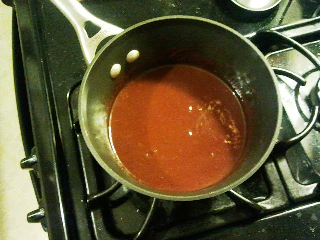 With the ribs on the grill for a long time, I made the sauce, which is basically a 1.5 to 1 mixture of BBQ sauce and Cabernet Sauvignon.