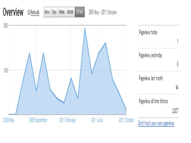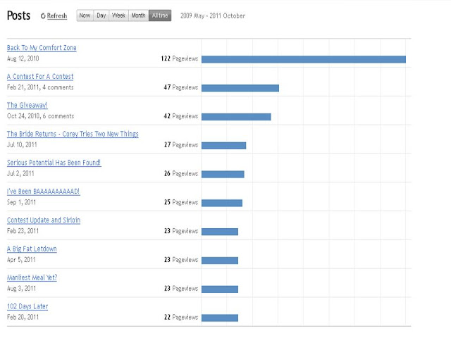 Also interesting to me is knowing which of my posts have been popular. I really can't pin down a good reason why one post gets more hits than another, but one of them is out in the lead by a LARGE margin!