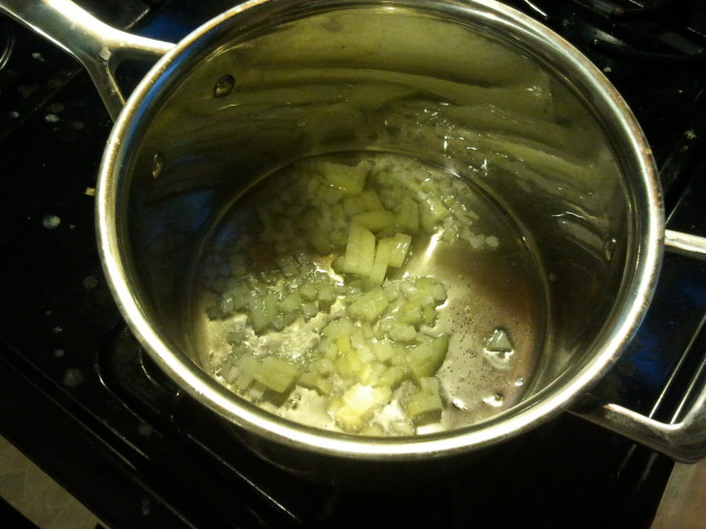 Speaking thereof, you start by simmering the apple cider, shallots, and jalapeno until it is reduced by half.
