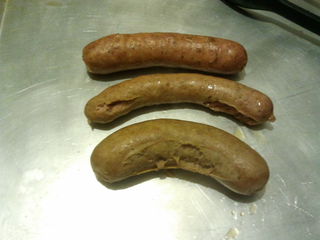 Upon completion of the boiling time, the sausages were just beginning to split. It was time to take them to grill!