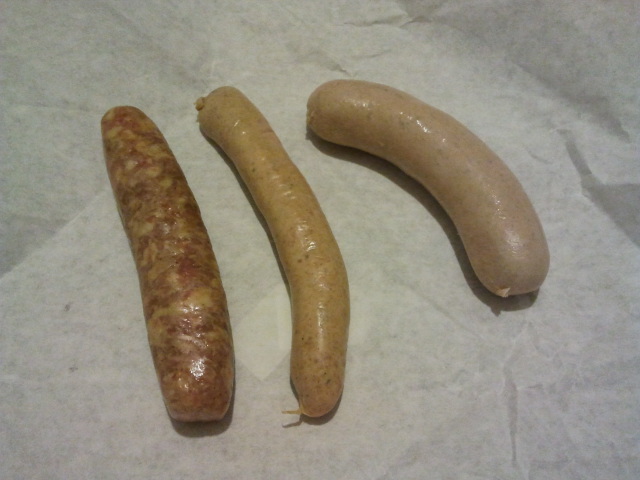 In short, The Bride isn't the biggest fan of brats and the like, although she will eat them on occasion. Tonight I would not have to be concerned with the risk of her turning her nose at them, so I went a little silly at Kroger and Sons down at Findlay Market, picking up a bratwurst, bierwurst, and knockwurst.