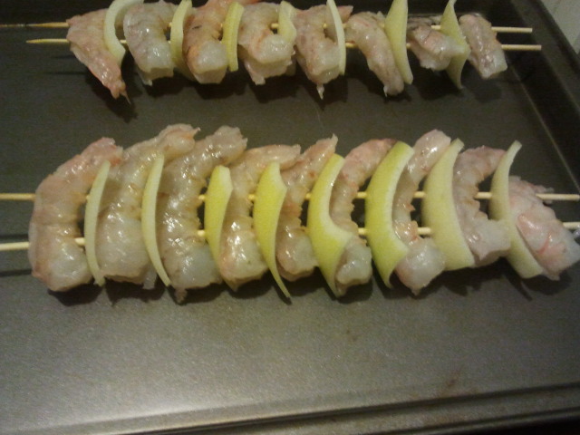It does take some time to shell and de-vein the shrimp (by the way, that's no vein you are removing), and I actually prefer to grill shrimp with their shells still on to save moisture, but I also like to follow a recipe as best as I can the first time so that I can see what was truly intended. Thus, I removed the shells for tonight.