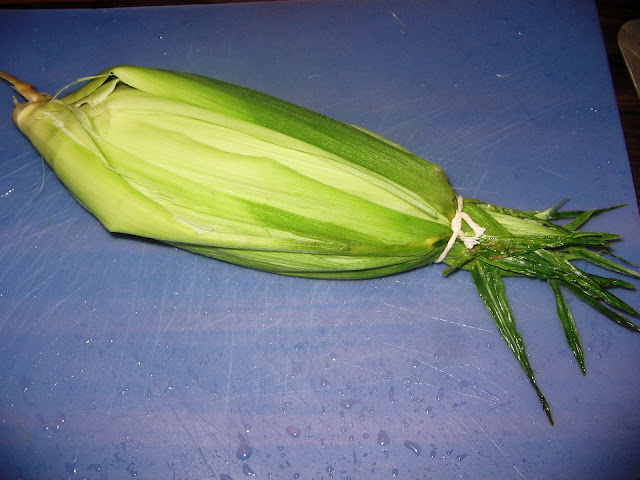 Now that the husks were soaked they were much more pliable. I pulled them back without actually removing them from the ear, all to expose those nasty silky fibers.