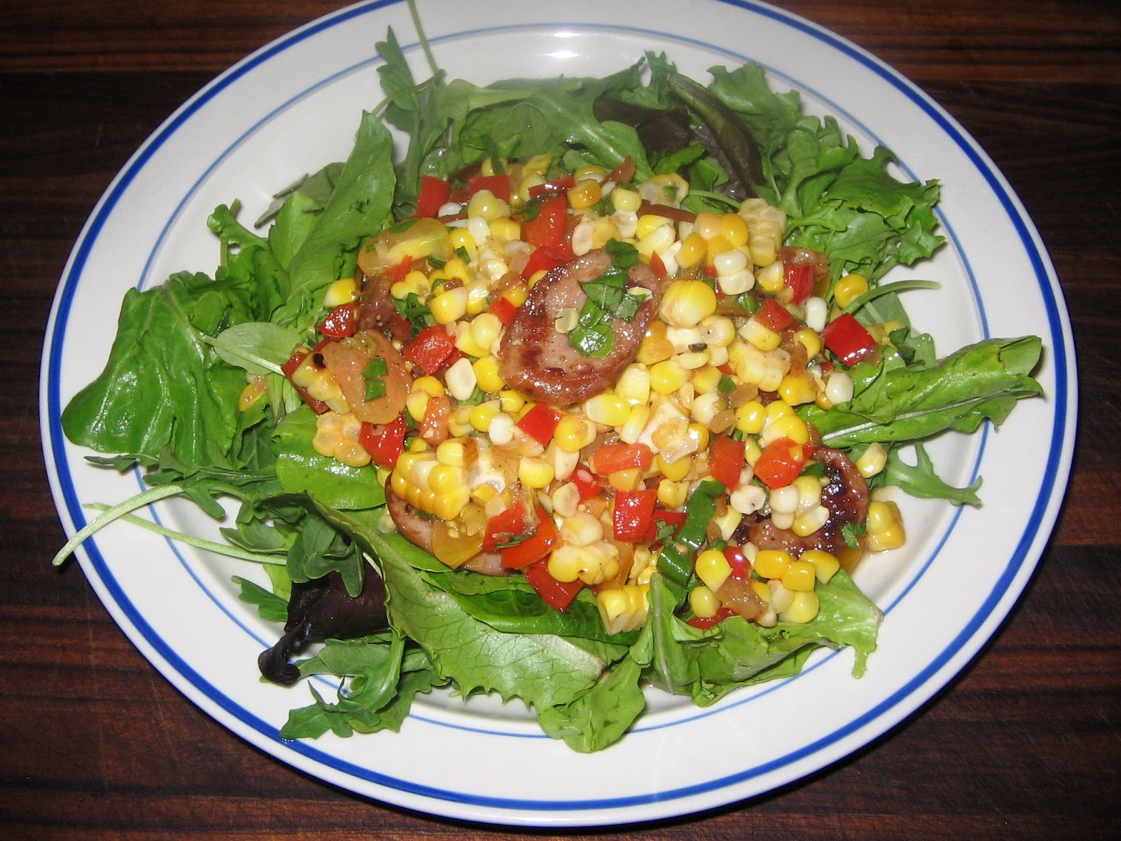 This was added to the andouille mixture, which was then used to top the salad. Lunch was ready!