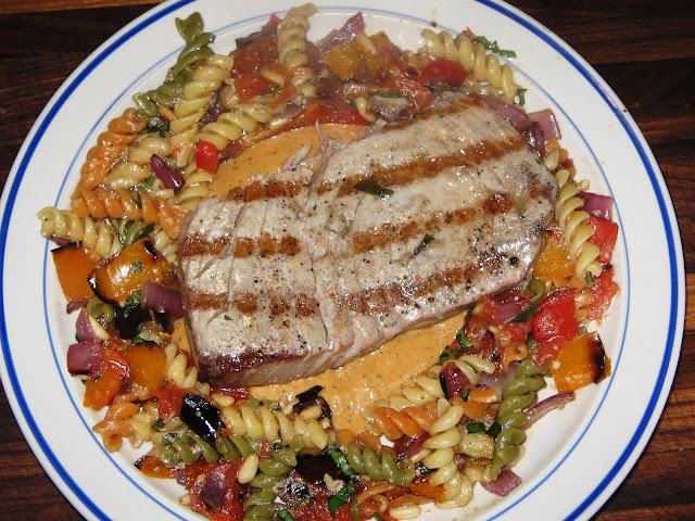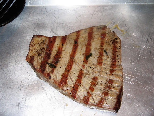 ReplyDeleteThanks! If you want to try grilled tuna, remember that thickness is more important than weight, because tuna is one of the types of fish that it is preferred to leave a little raw in the middle. I tell my fishmonger to cut it one inch thick, which gives you a steak that can easily be split into two for two meals. Get your grill as hot as it will get, and oil the tuna, not the grill. Season with salt/pepper/whatever, and cook for 2 to 2.5 mins per side.