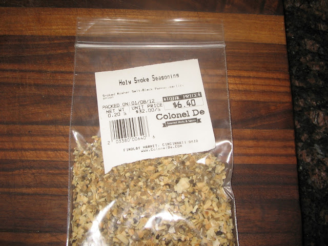 Instead of just using salt and pepper to season the burger, I had some leftover Holy Smoke Seasoning from Colonel De Ray's at Findlay which also had onion and garlic. How could that be bad for the burger?
