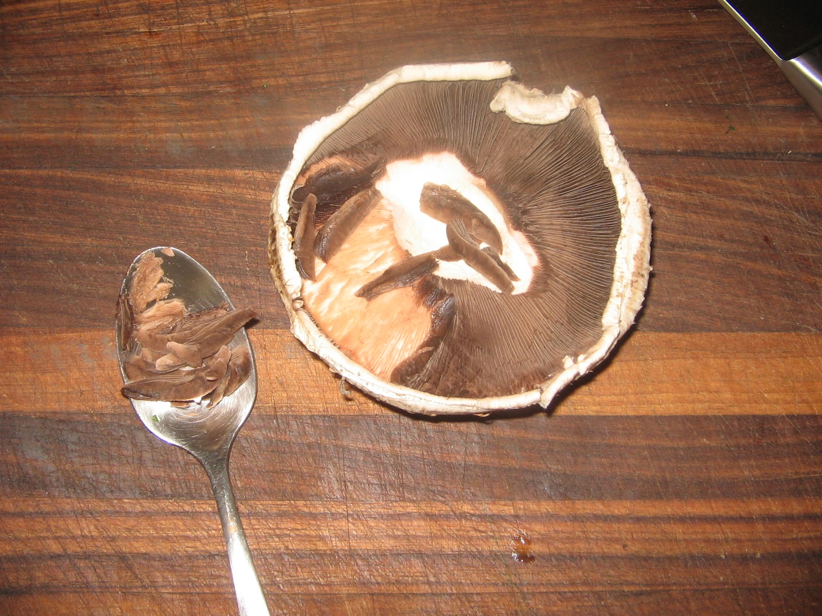 Those gills turn black and mushy when cooked, and can visually wreck a meal, so it is best to remove them. I like to use the side of a spoon to scrape them off the underside.