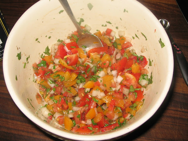 There's not too much more to say...it's salsa. Everything got chopped up and mixed together.