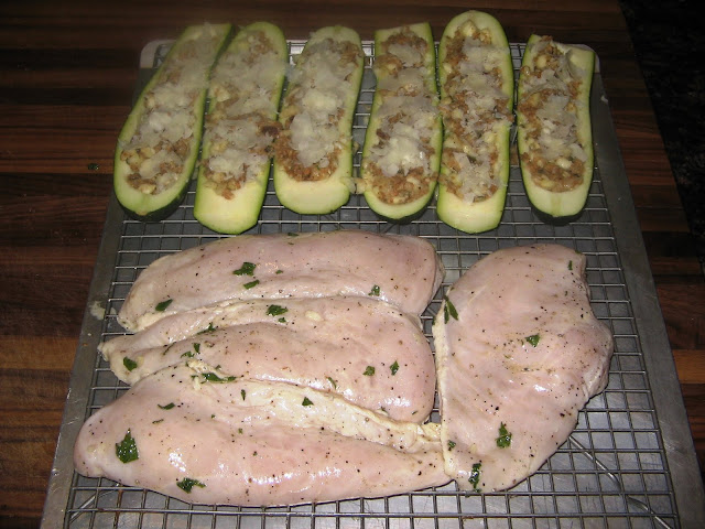 With everything in order for the chicken, I prepped the side I had choosen, Stuffed Zucchini on page 373.
