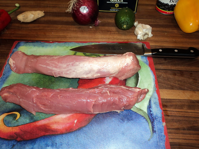 I have to make this quick, because there's a football game on TV that I want to watch. In an effort to make the best of what we had on hand, The Bride and I selected Caribbean Tenderloin With Black Bean Salsa, which is found on page 180.