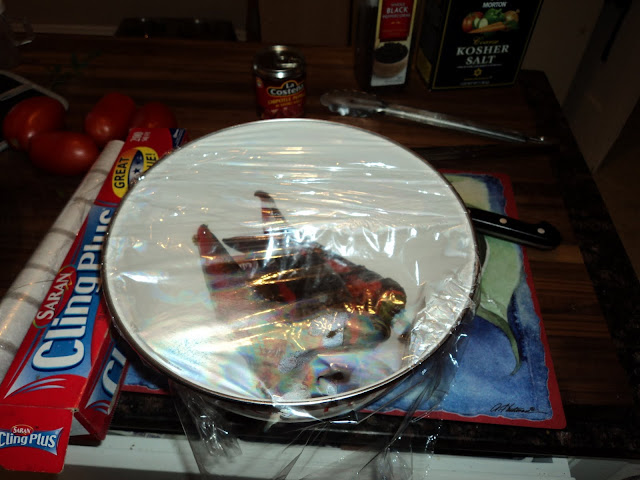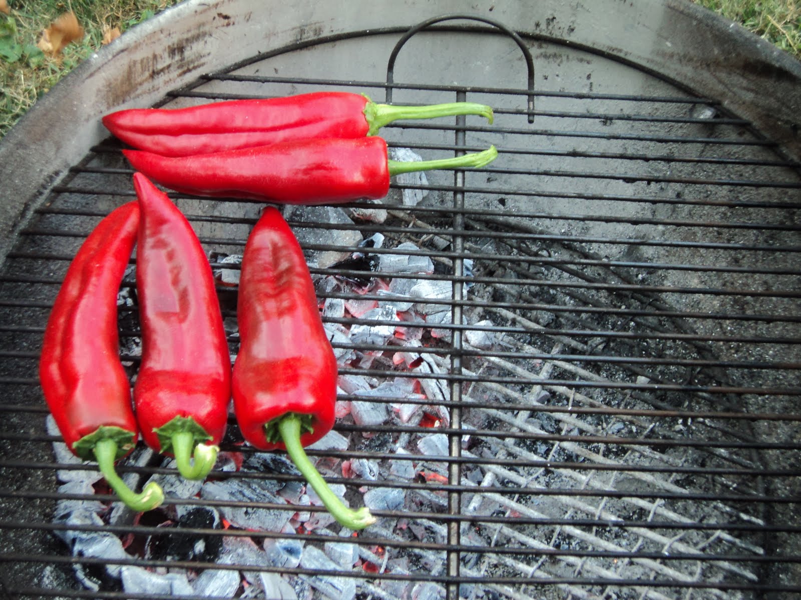 While Weber doesn't say to, I have enough experience roasting peppers that I remembered a simple trick. Take the roasted peppers off of the grill and put them in a bowl, covered with saran wrap. This traps the escaping steam and helps the skins peel off later.