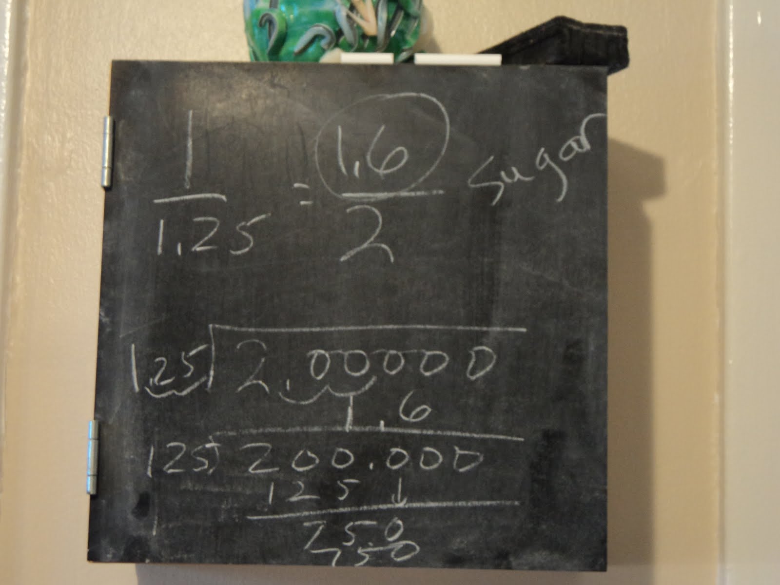 Yup, that's right. I used a chalkboard that I have in my kitchen to calculate a proportion. How in the world did I ever end up with my Bride? To prevent future problems with this recipe, I did what all good cooks do. I marked up my cookbook, leaving myself notes.