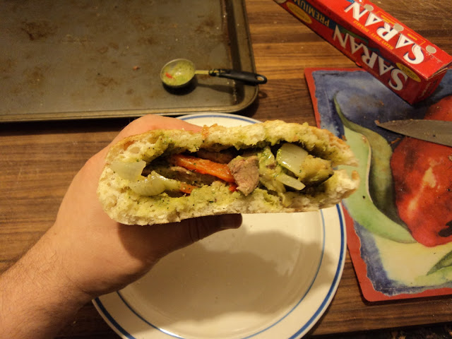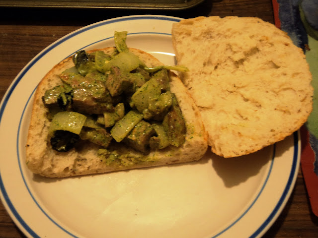 This was delightful. To be honest, this made me think of sitting in an outdoor European cafe on a mild summer day, and not so much of an overcast chilly afternoon in Cincinnati. I would have enjoyed it more as a lunch than a dinner, but it was still quite nice. The best adjective I could come up with to describe this hoagy is refreshing. The mint and dill with the lamb is a classic combination, and the feta's creaminess added a nice layer of flavor. This recipe will be reserved for late springtime weekend lunch.