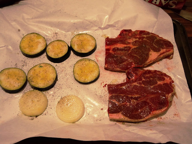 With the dressing in place and the bell pepper doing its thing, it was time to bring the rest of the ingredients to the grill.