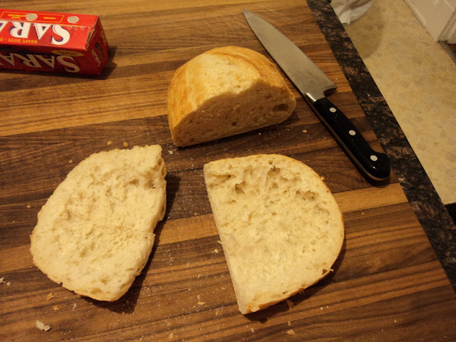 While these were on the grill, I cut my bread in half and dug out a "canoe" for later.