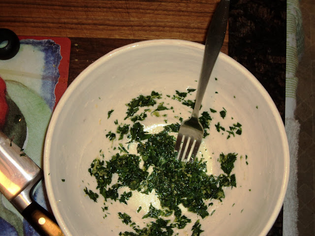 With the scallops in the fridge, the last necessary step was to pull together the garnish, and then I could move on to cooking the side dish.