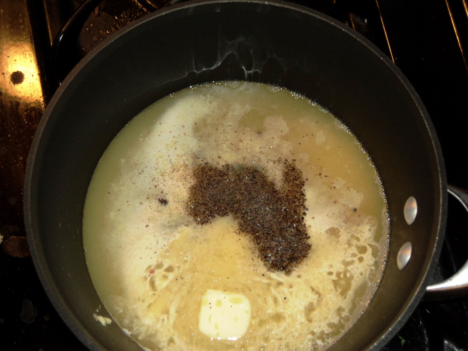 This is a fairly simple recipe. Begin this dish by boiling the "wet" ingredients.