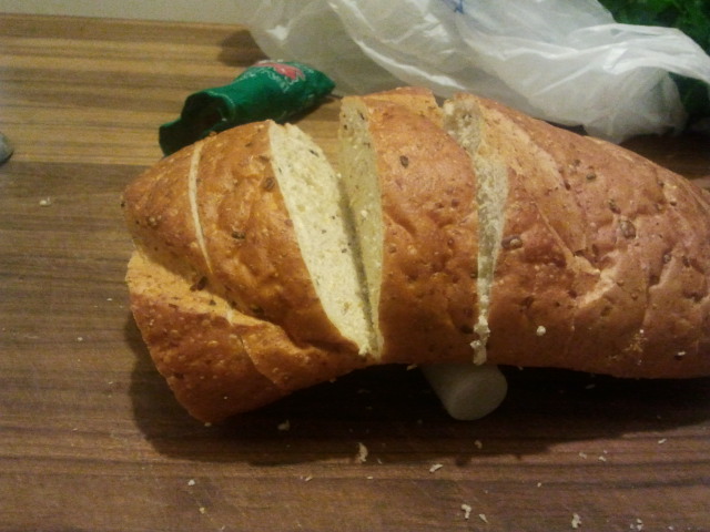 Wanting to actually cook two recipes tonight, I picked up what was necessary for the Grilled Garlic Bread on page 374.